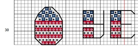 Digital (.pdf) copy of a cross stitch pattern featuring a american flag eggs with the text "ARE EGGS CHEAPER YET".